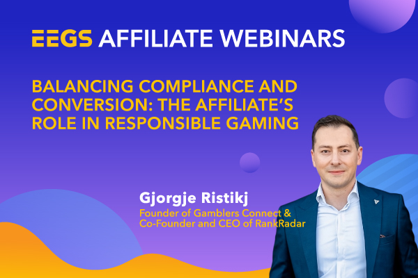 On May 13th, the Eastern European Gaming Summit (EEGS) hosted a dedicated affiliate webinar exploring one of the most pressing challenges in iGaming today: how affiliates can stay commercially effective while adopting an increasingly responsible role in player protection. The session, titled “Balancing Compliance and Conversion: The Affiliate’s Role in Responsible Gaming” featured Gjorgje Ristikj, Founder of Gamblers Connect and Co-Founder & CEO of RankRadar, as keynote speaker.
