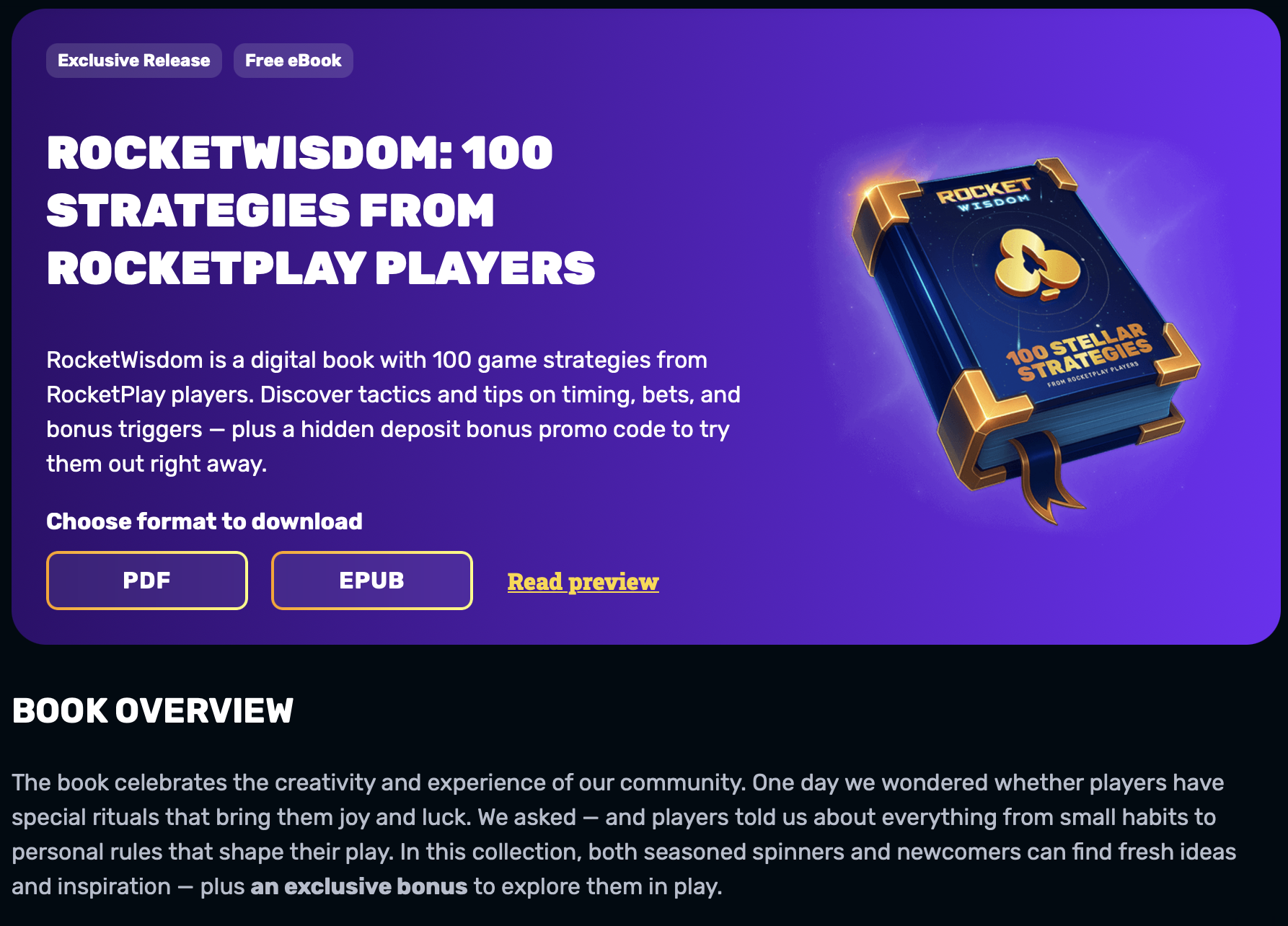 The Book of RocketWisdom remains available for free download on the RocketPlay website. It contains 100 real strategies shared by actual players, and can be used by anyone wishing to explore them in practice.