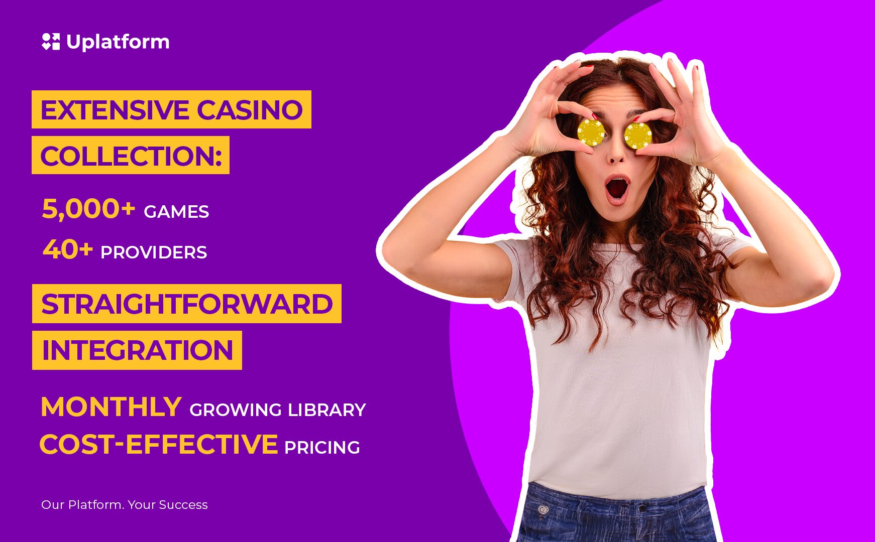 At Uplatform, our Casino Aggregator and Casino Turnkey ensure that players can enjoy games that take full advantage of this immersive potential. Featuring top providers like RubyPlay, our catalog is packed with games that seamlessly blend captivating visuals with expertly designed soundtracks, creating unforgettable gaming experiences.